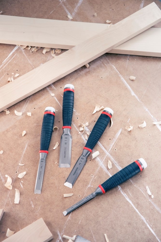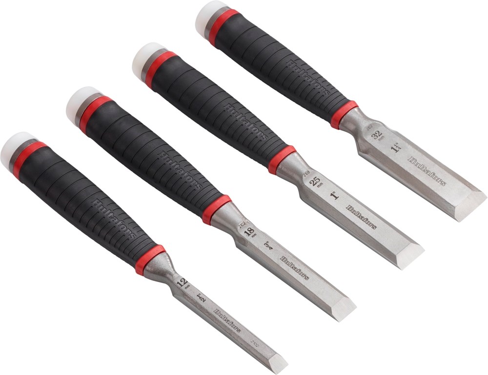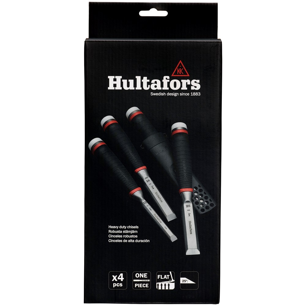 Hultafors Beitelset HDC met 4 beitels en holsters voor elk type werk, of het nu kracht of precisie vereist. De beitels zijn uit één stuk gesmeed met twee hardingszones en een robuust I-profiel dat door het hele handvat loopt. Dit maakt ze uitzonderlijk sterk en maximaliseert de krachtoverbrenging naar het werkstuk. De rand is onder 25° geslepen en zorgt voor een optimale verhouding tussen scherpte en duurzaamheid. De beitels kunnen over bijna de gehele bladlengte opnieuw worden geslepen, waardoor ze een zeer lange levensduur hebben. De hele beitel, inclusief het handvat, kan volledig plat tegen een oppervlak worden geplaatst, zodat je een perfecte parallelle snede kunt maken. De nylon eindkap kan worden vervangen als deze versleten raakt.