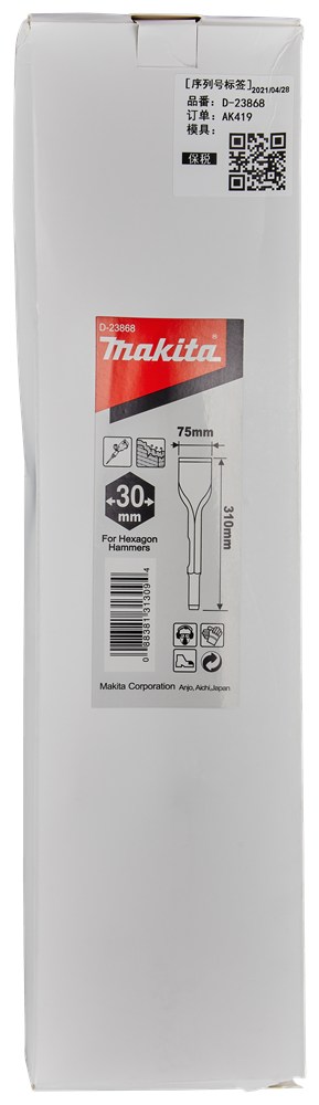 MAKITA PLATBEITEL 75X310MM D-23868 2354901 SW30Beitel D-23868 is ideaal in combinatie met HM1400 wegens plaatsingshoek beitel.Passend op Makita Model: HM1317C, HM1400, HM1511 Lees meer Bekijk andere uitvoeringen Omschrijving Specificaties Specificaties Fabrikant Documenten Certificaten Videos Handleidingen Tekeningen Deeplink Extra informatie SW30Beitel D-23868 is ideaal in combinatie met HM1400 wegens plaatsingshoek beitel.Passend op Makita Model: HM1317C, HM1400, HM1511 Technische specificaties gereedschapsopname 6-kant toepassing (materiaal) tegels lengte (beitel) 310 mm breedte (beitel) 75 mm verpakt per 1 st Technische specificaties Opname uitwendig SW30 Lengte 310 mm Breedte 75 mm Stuks per verpakking 1 st Ga naar de website van de leverancier
