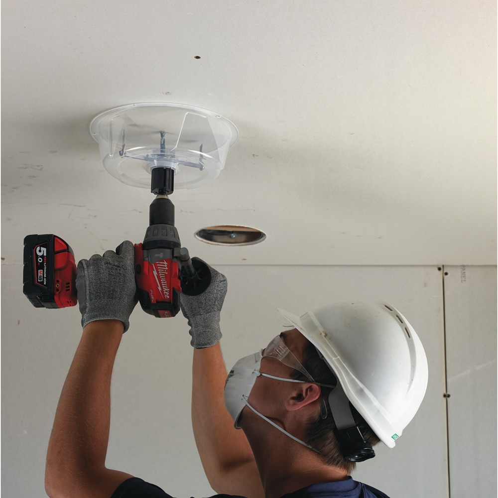 - Voor het boren van grote diameters voor airco installatie buizen, ventilatiekanalen, plafondspots en speakers.