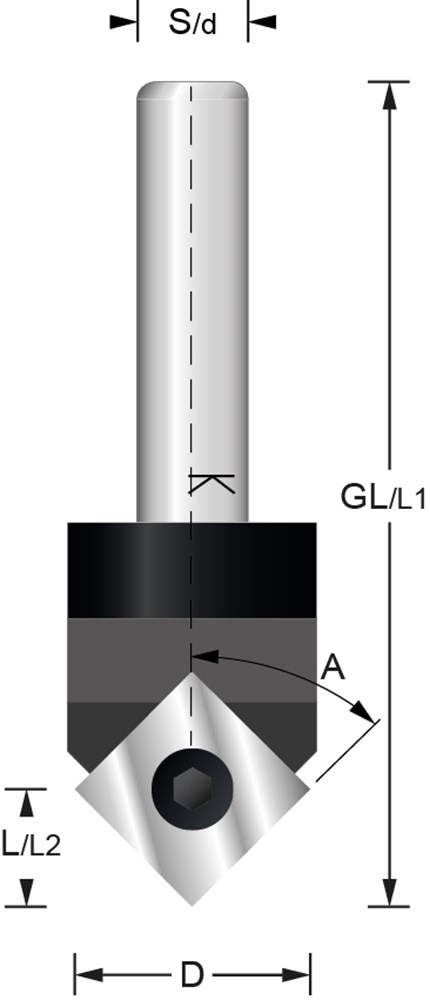 - Voor afschuinen en het maken van verdiepte V-groeven in hout en plaatmaterialen