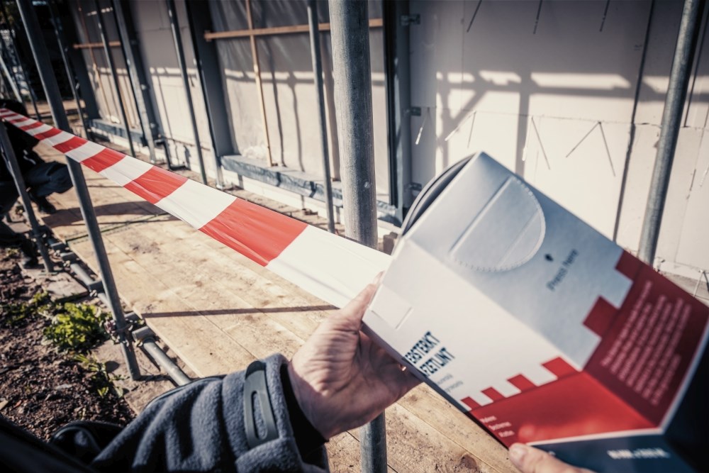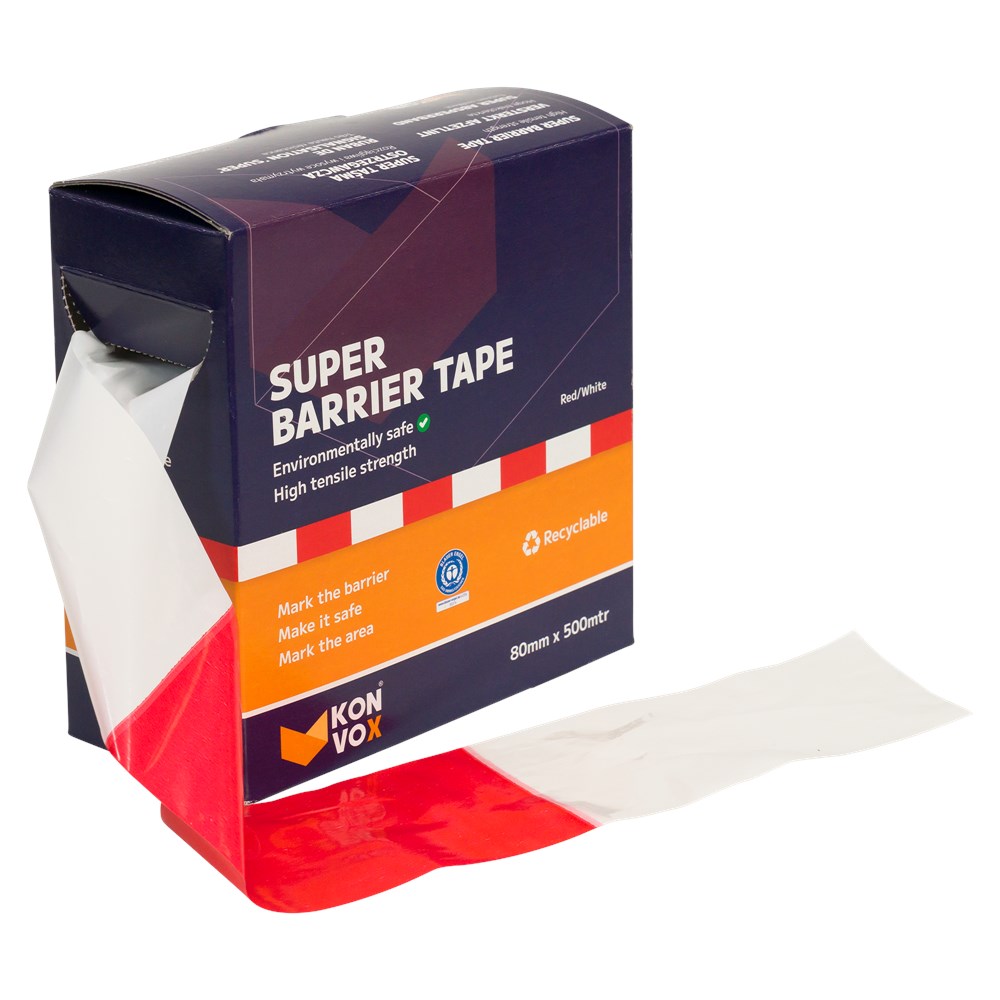 AFZETBAND ROOD/WIT 80 MM X 500 M