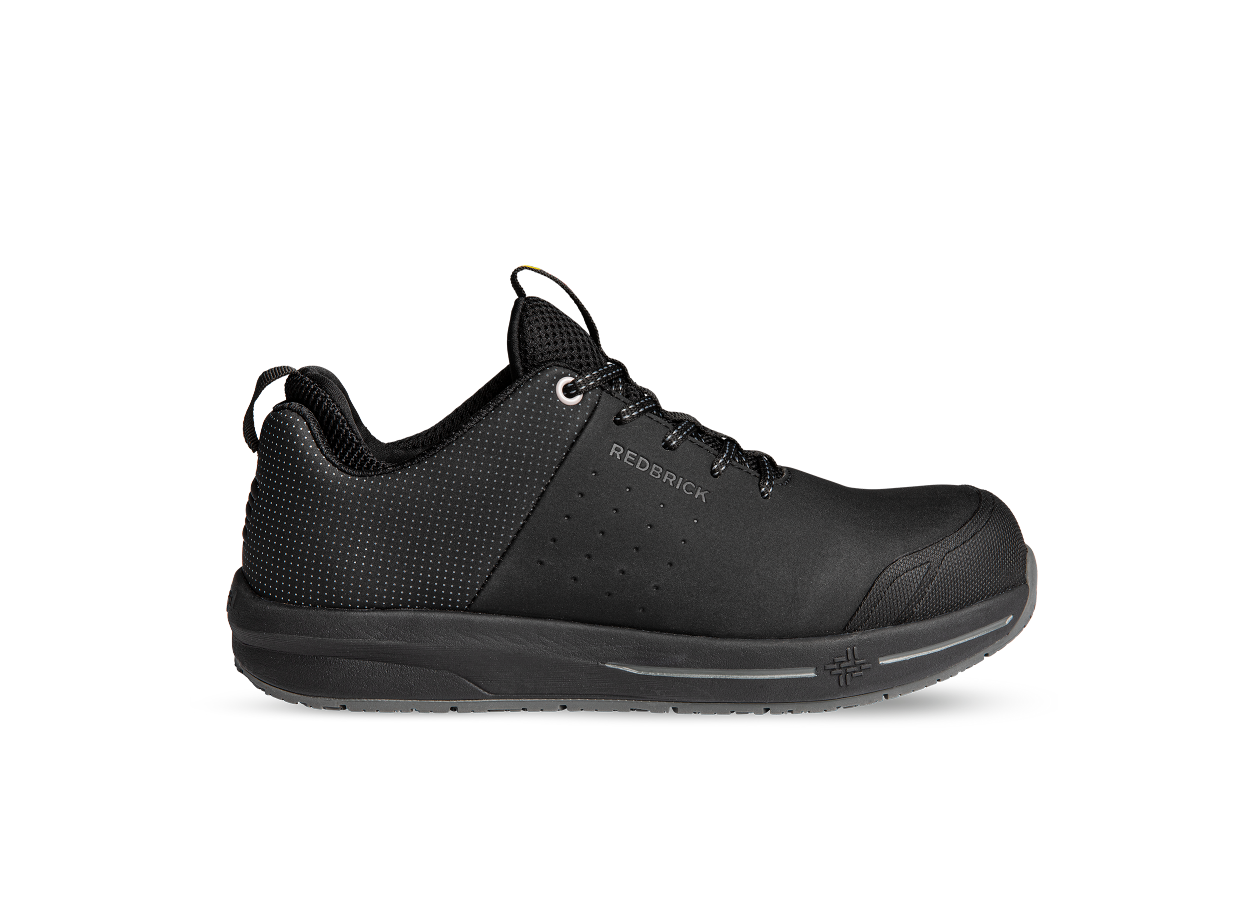 Deze zwarte werkschoen uit de Redbrick Motion collectie, type Shade, met veiligheidsklasse S3 heeft een aluminium neus en een Technical fibers non-metallic tussenzool. Deze stijlvolle lage schoen heeft de volgende kenmerken: metaalvrije tussenzool, ademend, uitneembare inlegzool,ESD, lichtgewicht, vegan. De Redbrick Motion Shade bestaat uit de volgende materialen: bovendeel: stof/leer/kunstleer, voering/binnenzijde: textiel, zool/onderzijde; rubber.